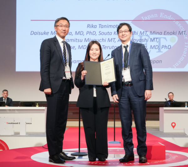 2025年4月25日〜27日に大阪で開催されたJapan Endovascular Treatment Conference 2025にて「EVT直後のSPP値測定の意義と神経ブロックの関係性」という演題を発表し、メディカルスタッフ部門の100演題近いエントリーの中から最優秀賞を受賞しました。今回の発表は日常業務の疑問をもとに、EVT直後にSPP値を測定することの有用性を示すことができました。日々の検査を振り返り、整理してまとめることは新たな発見につながると感じています。