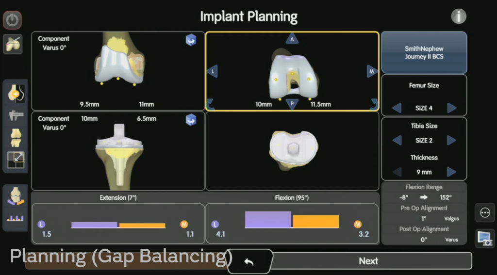可視化されたバランスを参考にしながら、医師が人工関節の設置プランを調整することが出来、患者様個々の状態にあった手術を行うことが出来ます。
