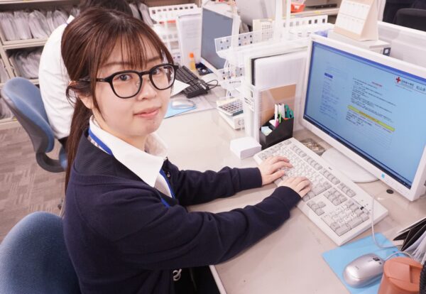 外来医事課は、病院の顔として患者さんをお迎えします。患者さんに寄り添った丁寧で温かい対応を心がけ、不安な気持ちを和らげられる事務職員になりたいです。また、周りから必要としていただける人材になれるように、いつまでも謙虚さを忘れず、日々新しい知識を身につけたり、スキルの向上に努めたいです。