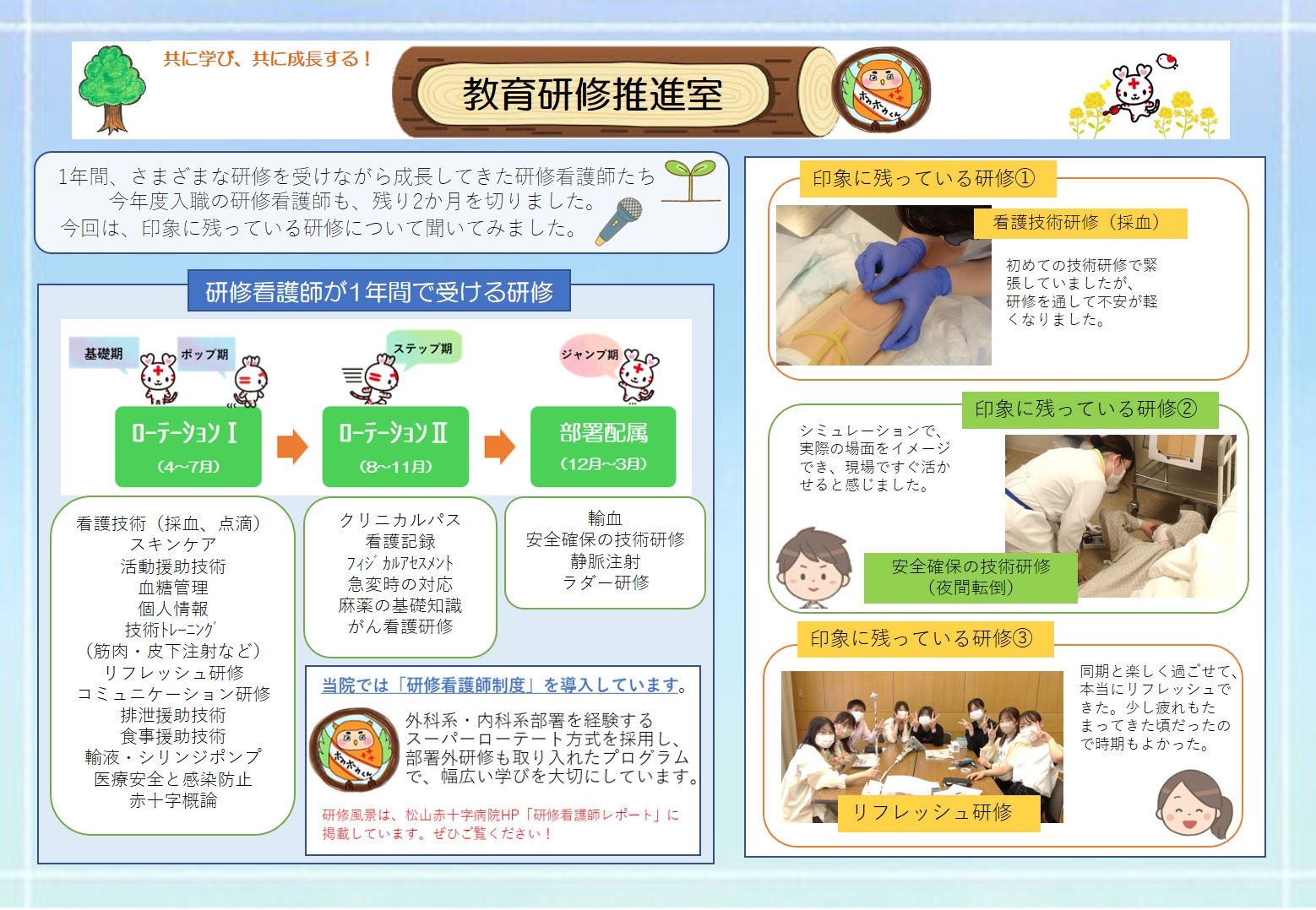 目次 教育研修推進室便り 東10病棟便り 東9病棟便り 西9病棟便り 東8病棟便り 西7病棟便り 西8病棟便り 東7病棟便り 西6病棟便り 東6病棟便り 西3病棟便り HCU便り 東3病棟便り ICU・CCU便り 東5病棟便り NICU・GCU便り 北5病棟便り 中央手術室便り 救急センター便り 西10病棟便り 教育研修推進室便り 教育研修推進室便り 投稿日:2026年2月4日 水曜日
