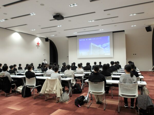 令和8年3月19日(木)、23日(月)に開催した看護インターンシップでは、2日間で74名の看護学生さんに参加いただきました。今回の職場体験では、病棟の雰囲気に触れたりカンファレンスへ参加したりと、普段見ることのできない現場を体験していただきました。参加者からは「実習では体験できないことを見ることができた」との声が寄せられ、大変好評でした。また、就職活動が本格的に始まる時期ということもあり、看護師との座談会も盛況で、気軽に質問や相談ができる有意義な場となりました。