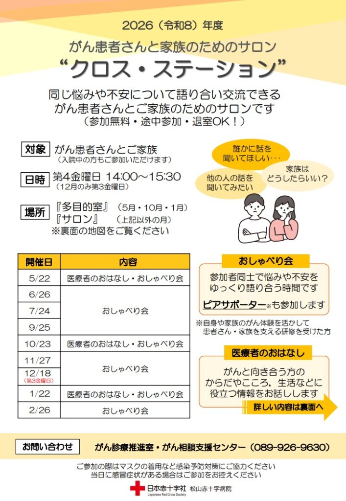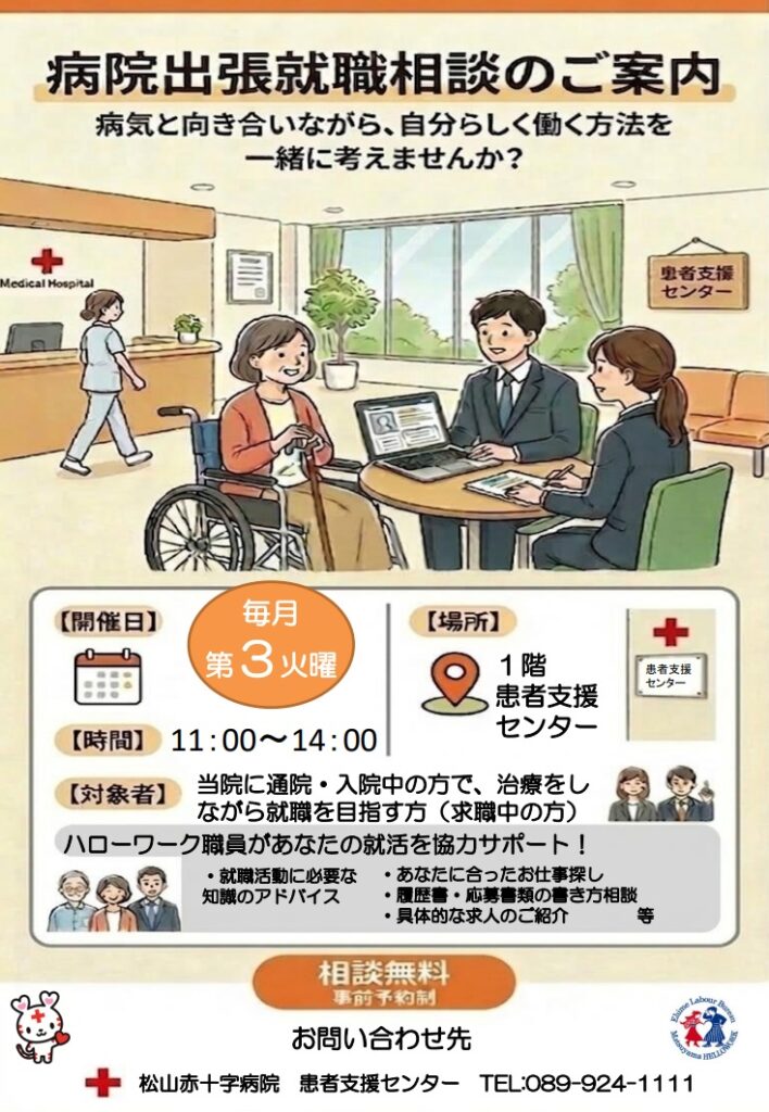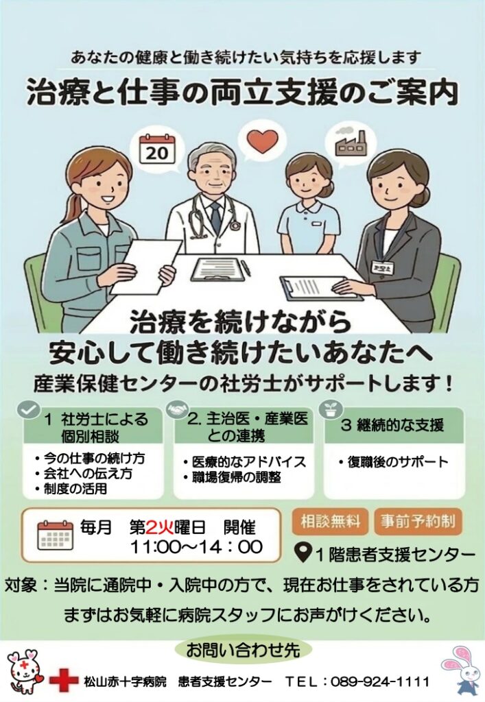 ● 連絡先 場所:2階 がん相談支援センター 連絡先:089-926-9630 対応時間:9:00~16:00(平日のみ)